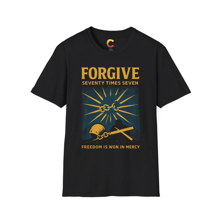 Wear your faith and inspire change with the Forgive 70x7 Matthew 18:22 Christian Command Tee. Click ‘Add to Cart’ now to claim your new favorite comfortable apparel and carry Christ’s message of mercy wherever you go!